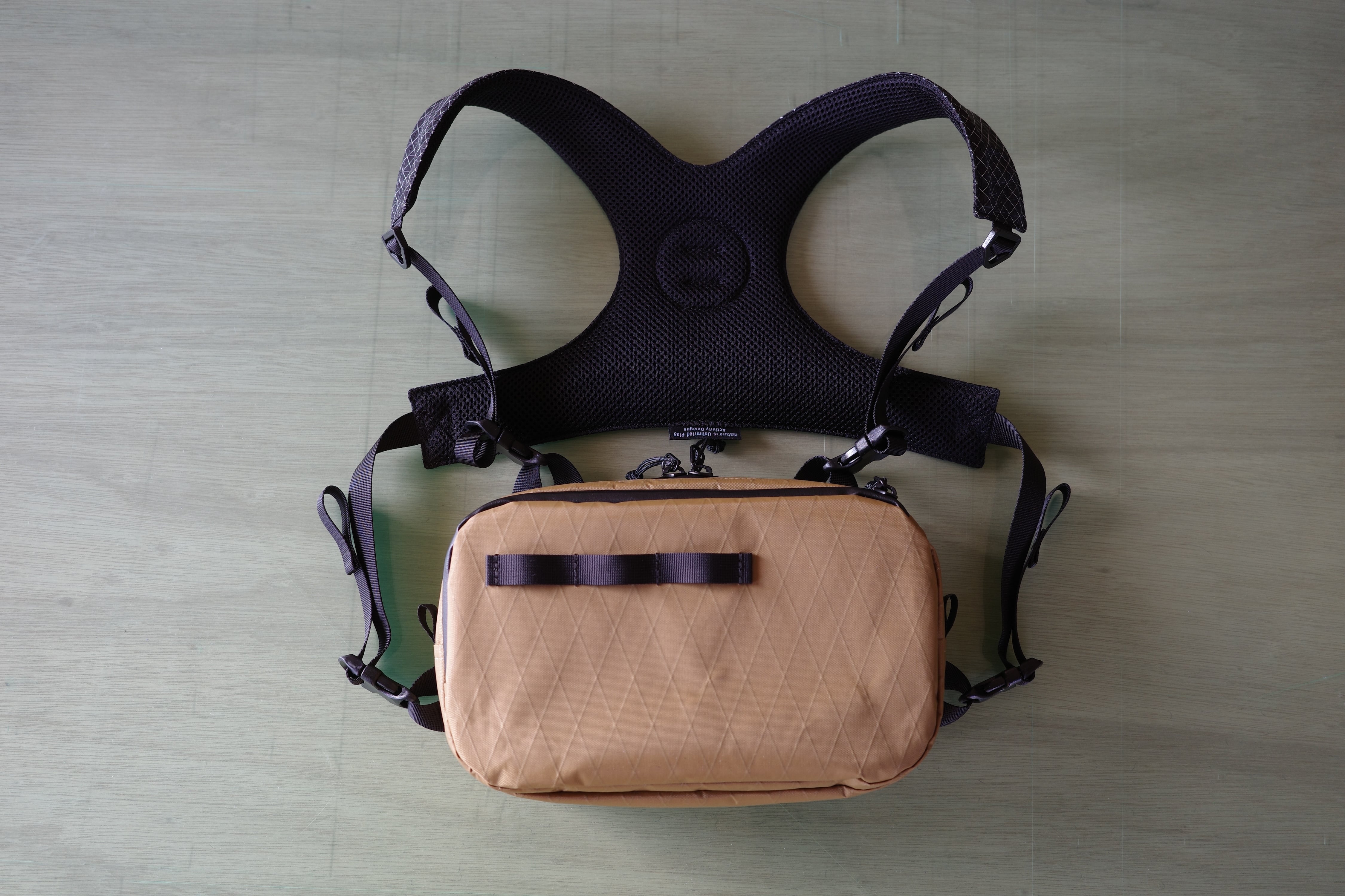 行動の中で使え、道具を扱う場面で活きる、チェストパックです。