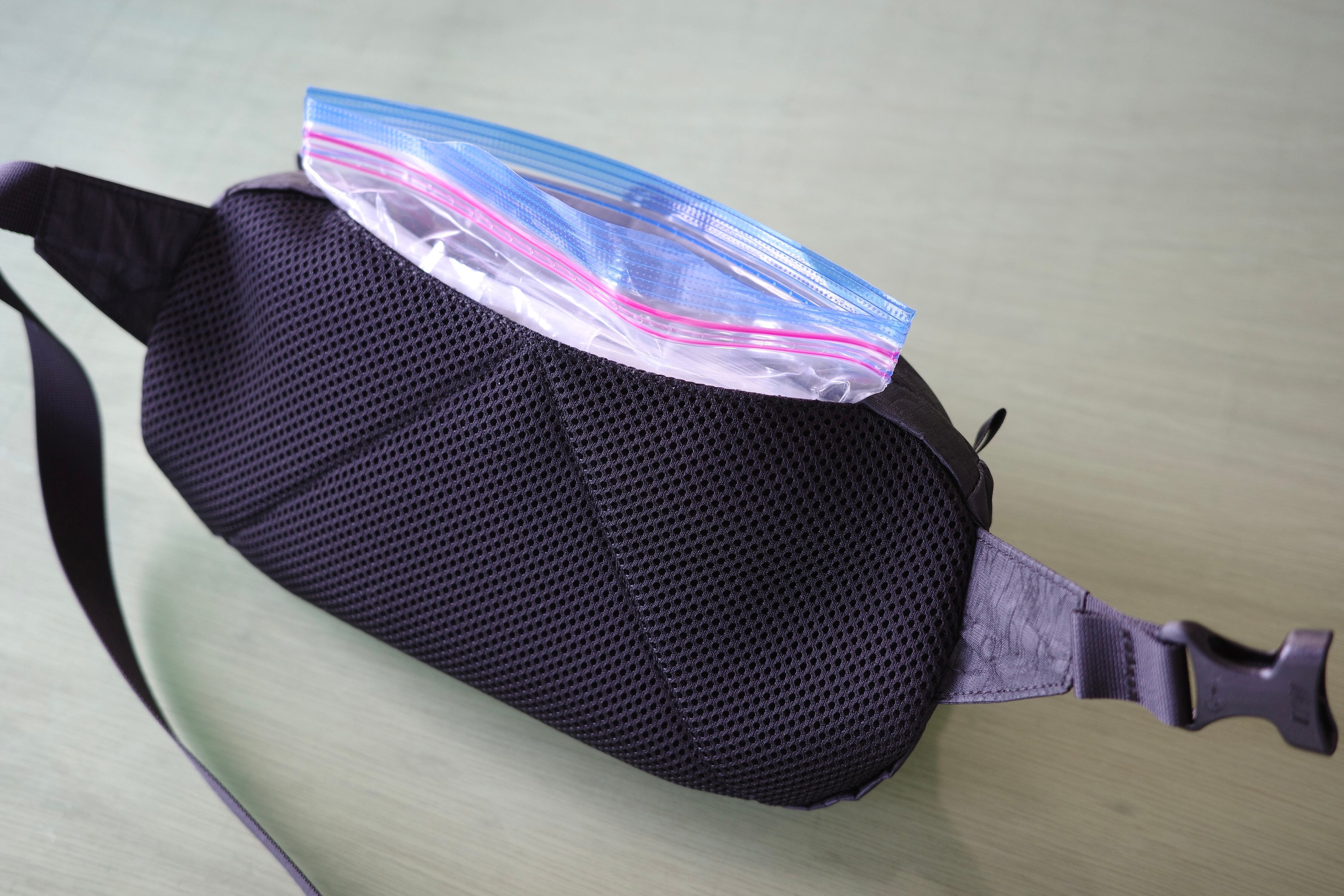 ・背面ポケットはスマホや地図、ジップロックSサイズが収まります。