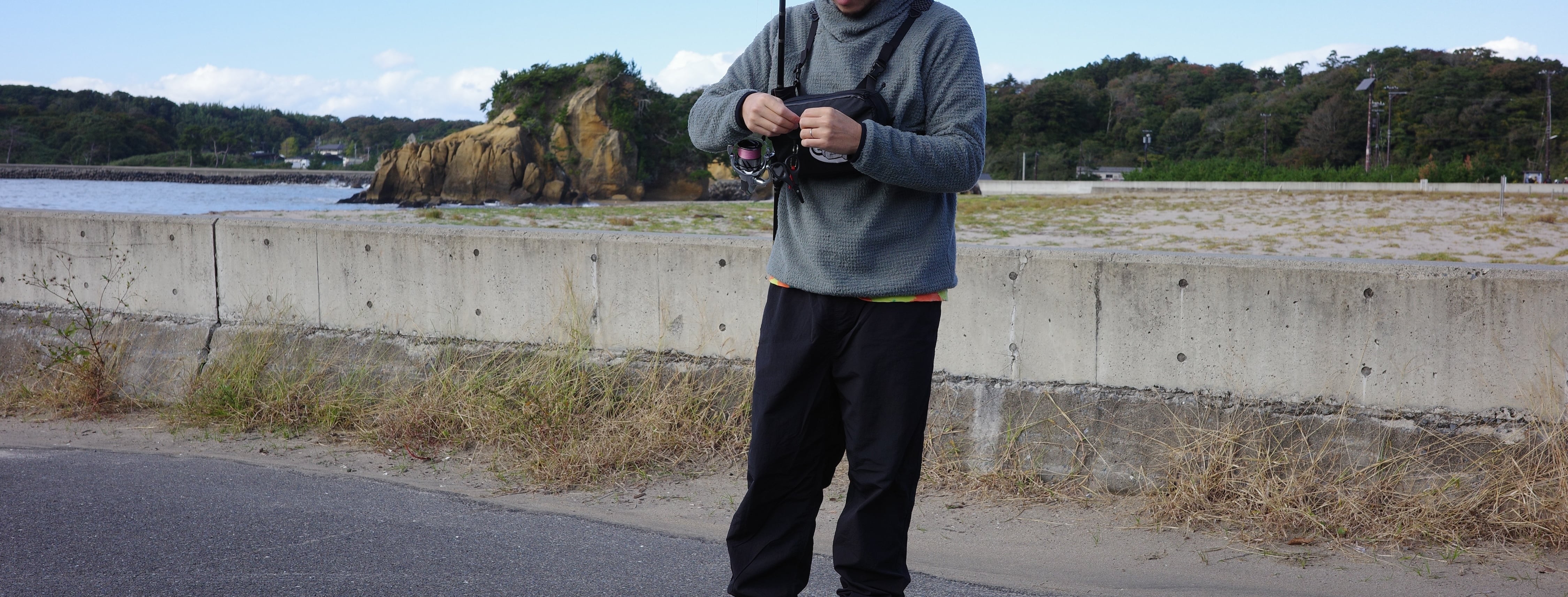 歩き・かがむ・ロッド操作・写真撮影 のどれも邪魔にならない。