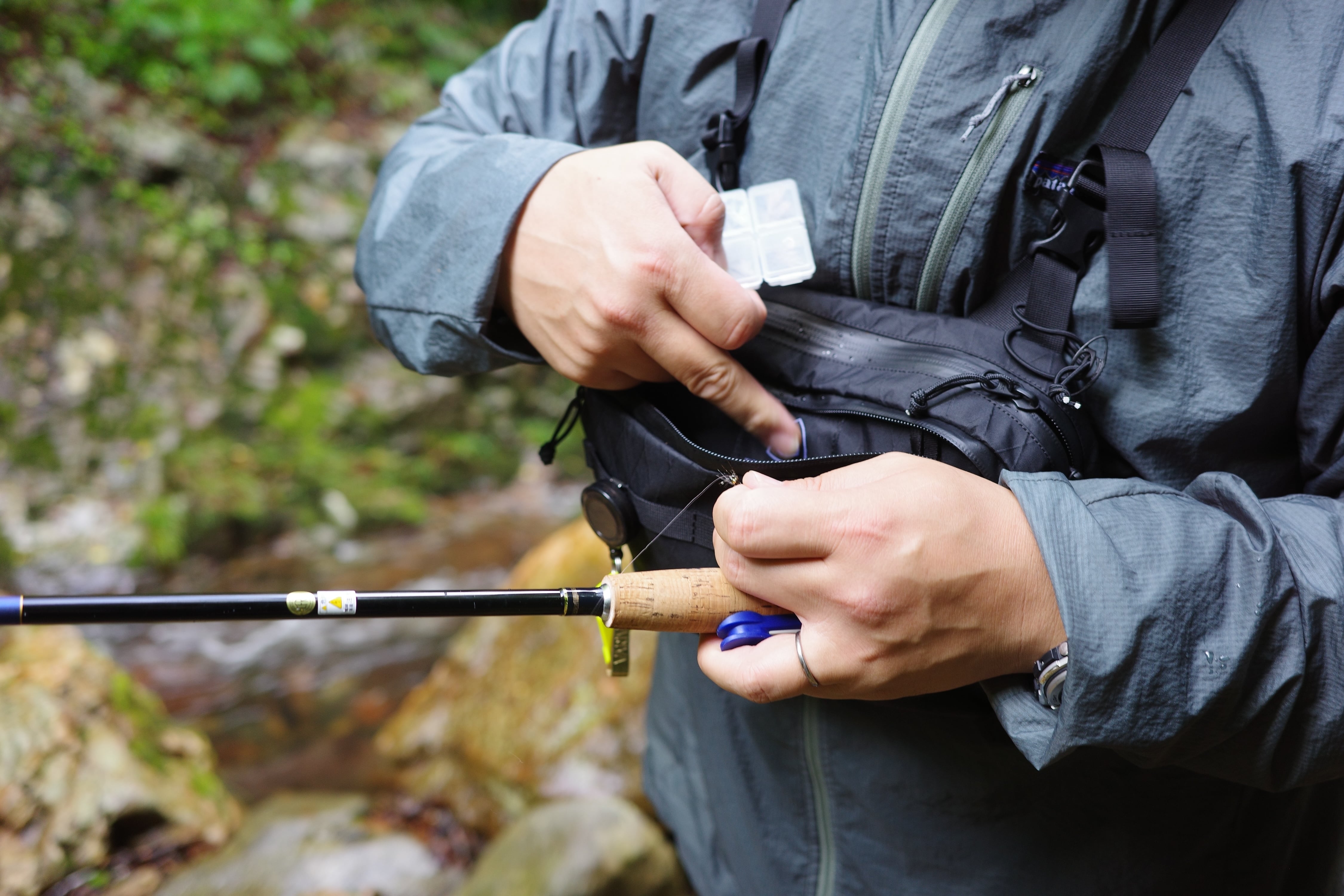 移動しながら釣るとき、最低限の道具だけまとめて、動作の邪魔にならないパックが欲しかったのが始まり。