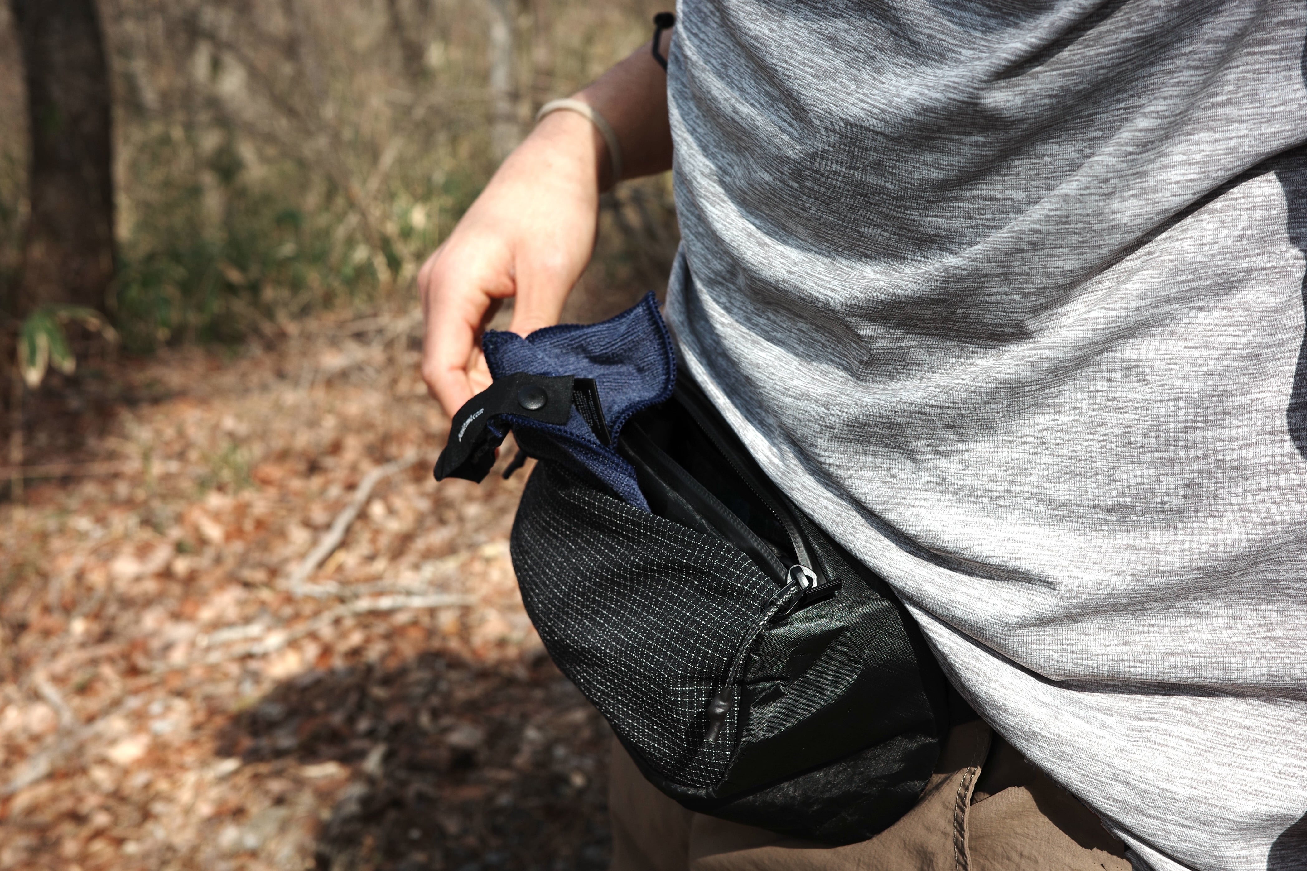 ストレッチは、上から手を突っ込めてミニポケット感覚で使える。かさばる形のヘッデンもそのまま入る。