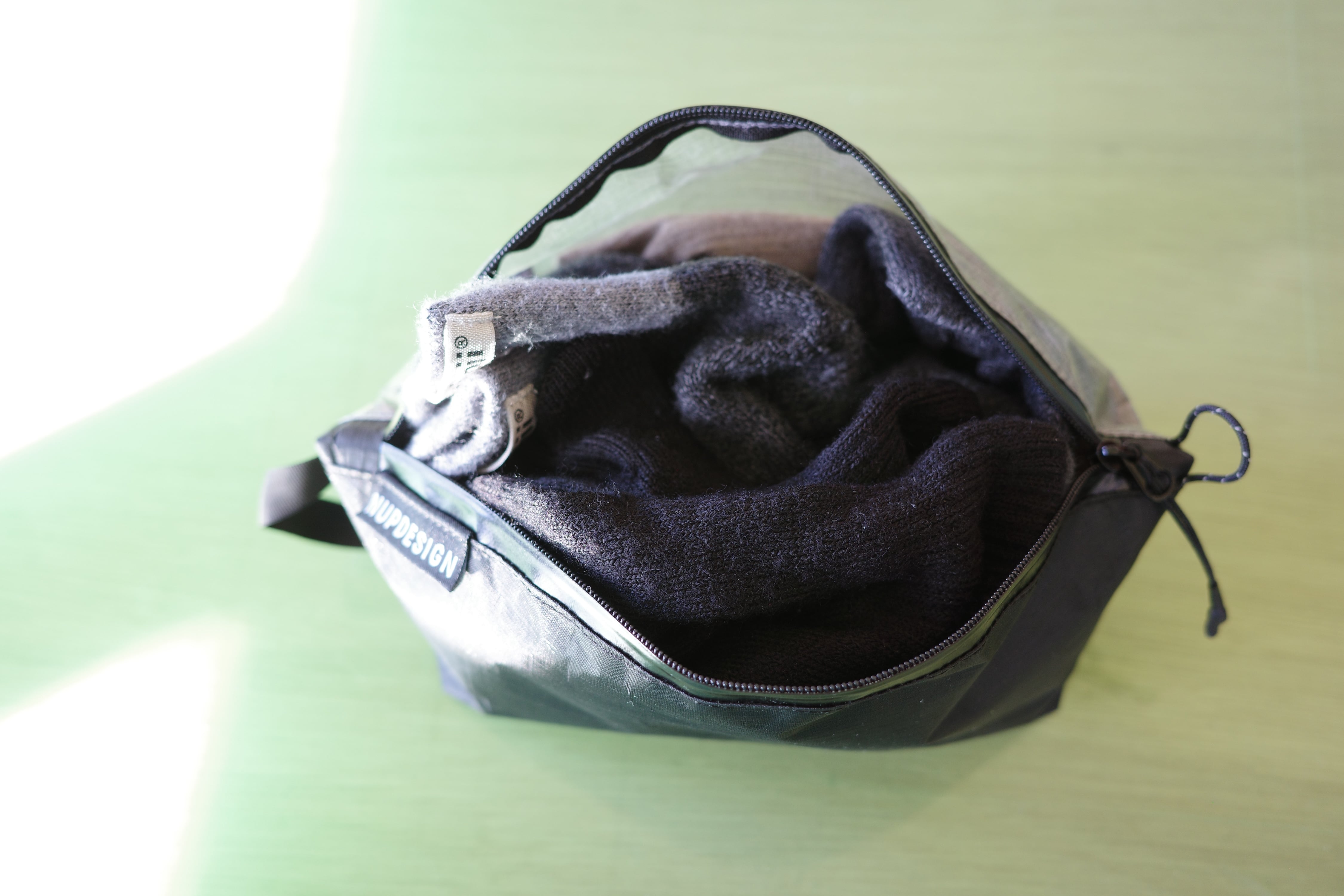 「押し込む動き」から逆算して形を決めたストレージサック。